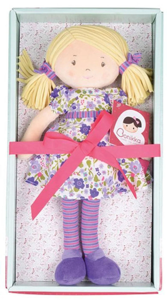 Tikiri Bonikka rongybaba #Peggy szőke haj rózsaszín-lila ruha #5169