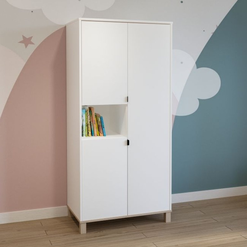A Misty nagyszekrény kialakításánál arra törekedtünk, hogy kényelmesen pakolható, praktikusan kihasználható legyen! A nyitott polc alatti és feletti ajtókkal takart részek akasztós kivitelűek, melyek plusz polcok megvásárlásával (2db/csomag) könnyen átalakíthatók játék, vagy hajtogatott ruha tárolására. A nagyszekrény ajtajai fékezve záródnak, megóvva a babát a hirtelen zajoktól.
