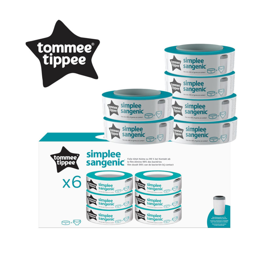 Praktikus 6 csomag utántöltő kazetta a Tommee Tippee Simplee Sangenic pelenkakosarakhoz.