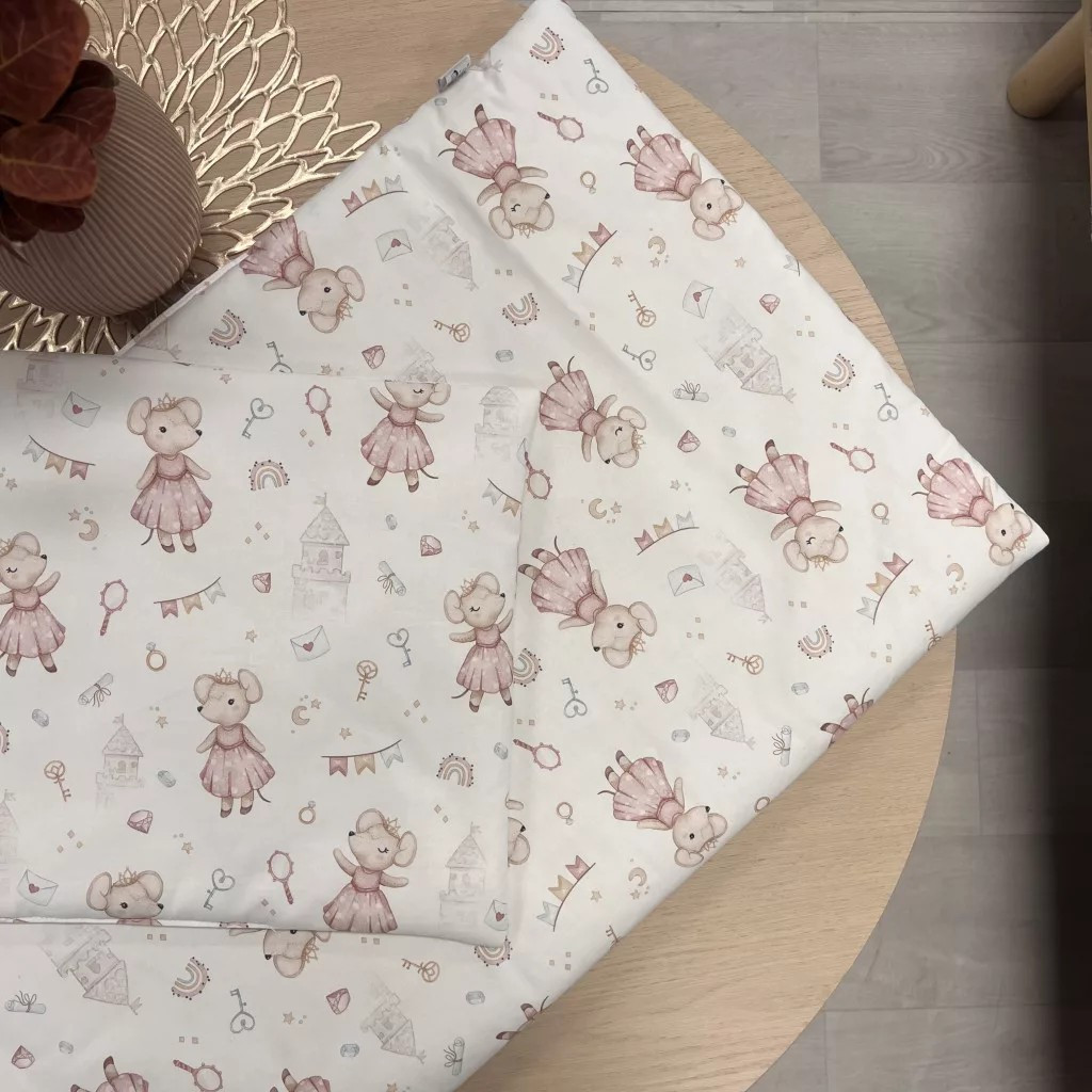 Vidám színek, kedves formák a legfinomabb pamut anyagok felhasználásával készül. Az ágynemű töltettel egybevarrva készül így nem mozdul el benne a töltet és mosni is könnyebb. Belső töltete antiallergén lélegző poliészter és mind a négy évszakban ideális lesz gyermeked számára. A párna lapos kialakítású. Ez a méret 2.5 éves korig ideális választás.