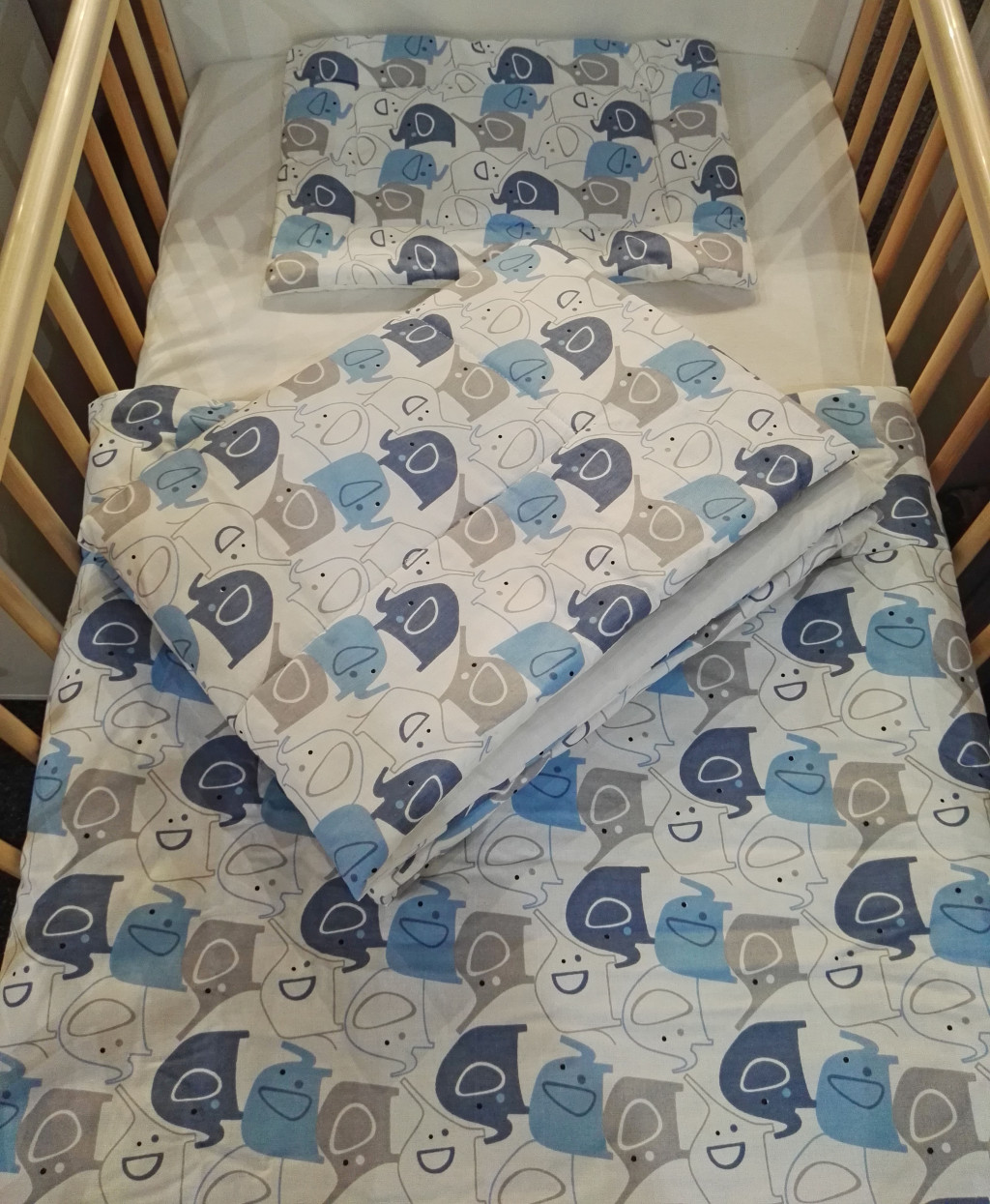 Wikids 3 részes ágyneműgarnitúra - elefántos kék-szürke