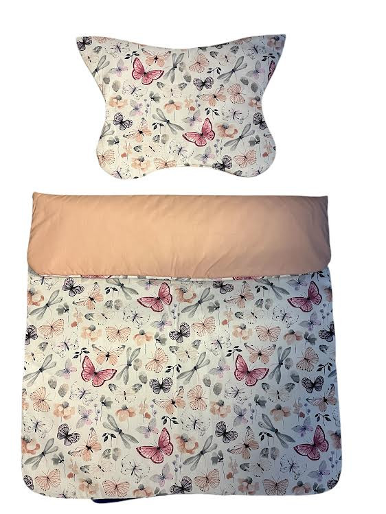 Wikids 3 részes ágyneműgarnitúra - Vászon-Velvet - pillangós szürke-púder