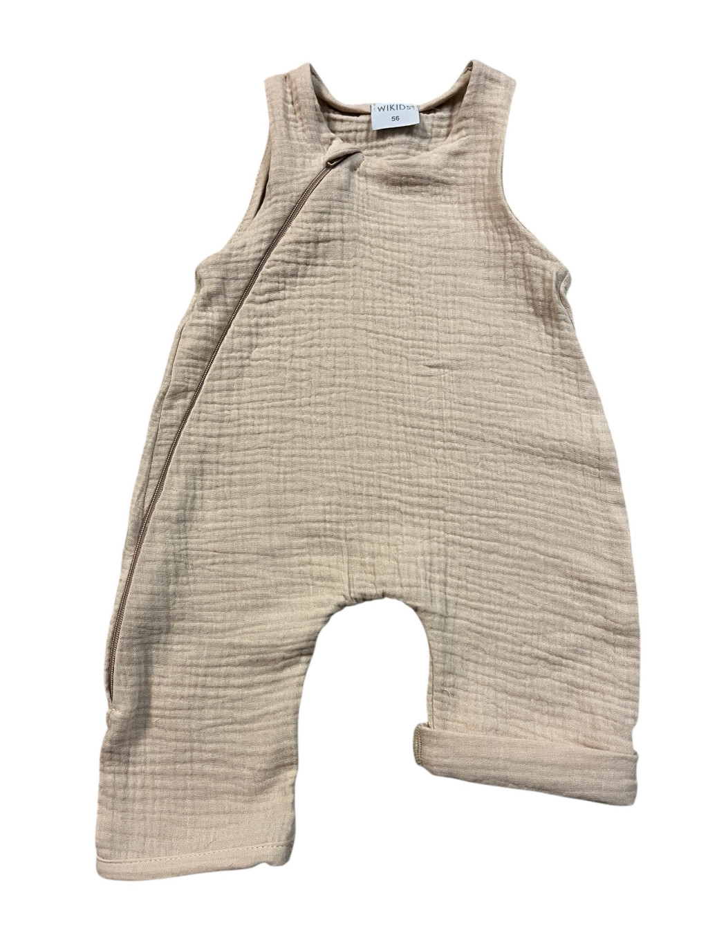 Wikids pamut - pelenka anyagú ujjatlan cipzáras rugi #62 bézs
